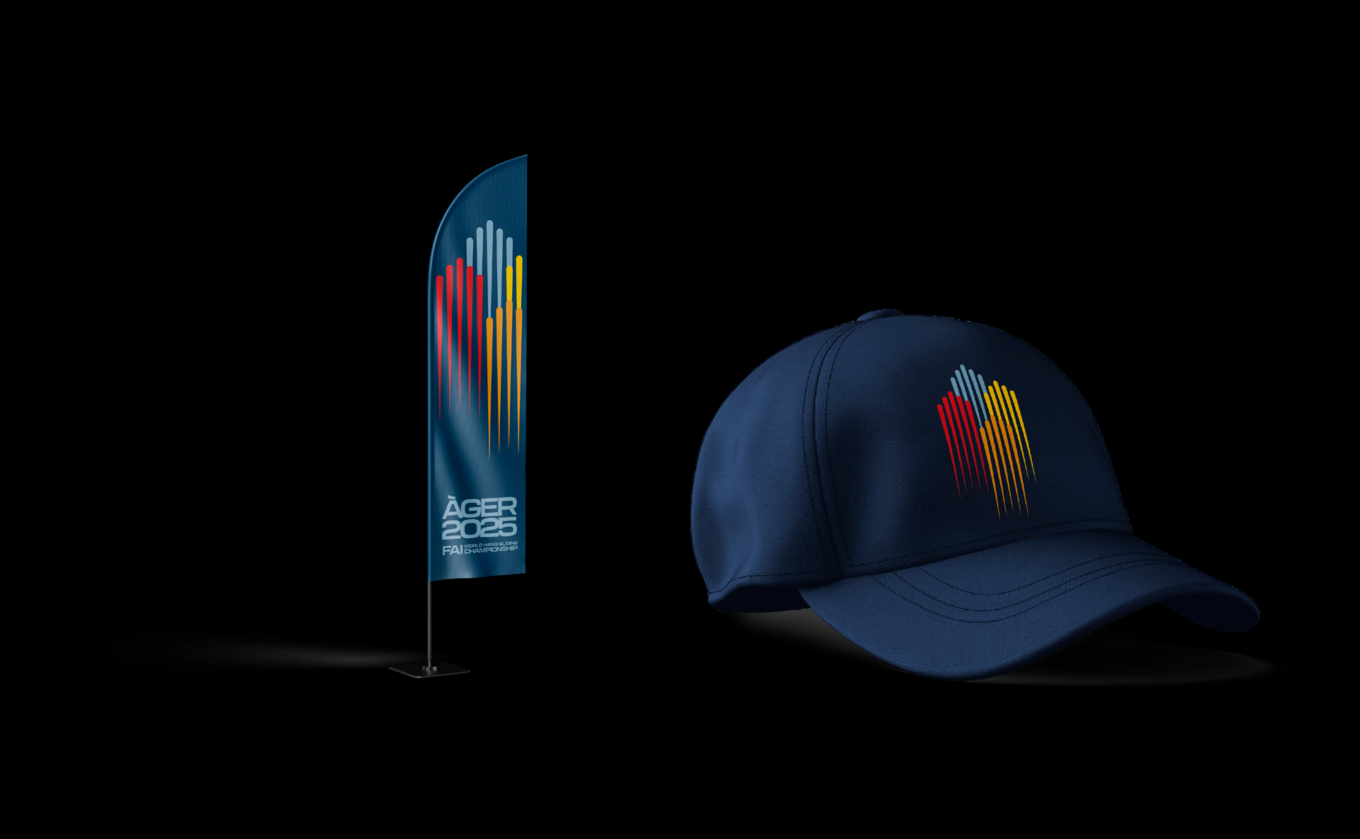 Àger va acollir el mundial d'ala delta l'estiu del 2025. Ens encarreguem de dissenyar el logotip i els elements de promoció i equipació de l'organització amb una imatge inspirada en la competició i la velocitat de les ales.